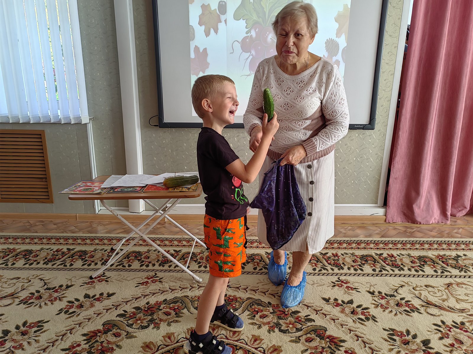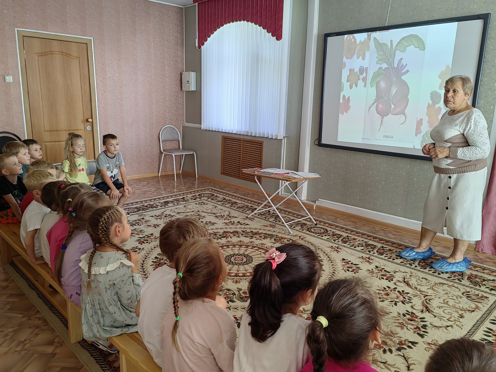 Осень – прекрасное и красивое время года, которое, словно художник, раскрашивает природу в яркие цвета. Этому загадочному времени года было посвящено тематическое занятие в группе «Ракета». Вместе с сотрудником городской библиотеки Людмилой Александровной дошкольники вспомнили приметы осени, дары природы, а также посоревновались в быстроте и ловкости в эстафете по сбору урожая картофеля, отгадали на ощупь овощи в волшебном мешочке.
